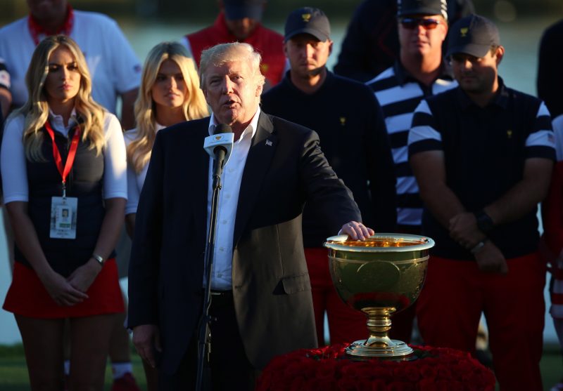 During his first term as president, Trump attended the 2017 Presidents Cup at Liberty National in New Jersey. Earlier this week, Trump’s Doral Resort Blue Monster course was named the venue of a new signature event on the 2026 PGA Tour schedule, the Miami Championship.