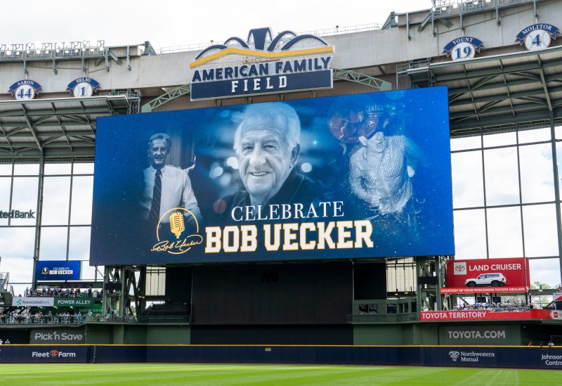 Alongside the retired numbers of Brewers greats, there was a microphone icon accompanying Uecker’s name.